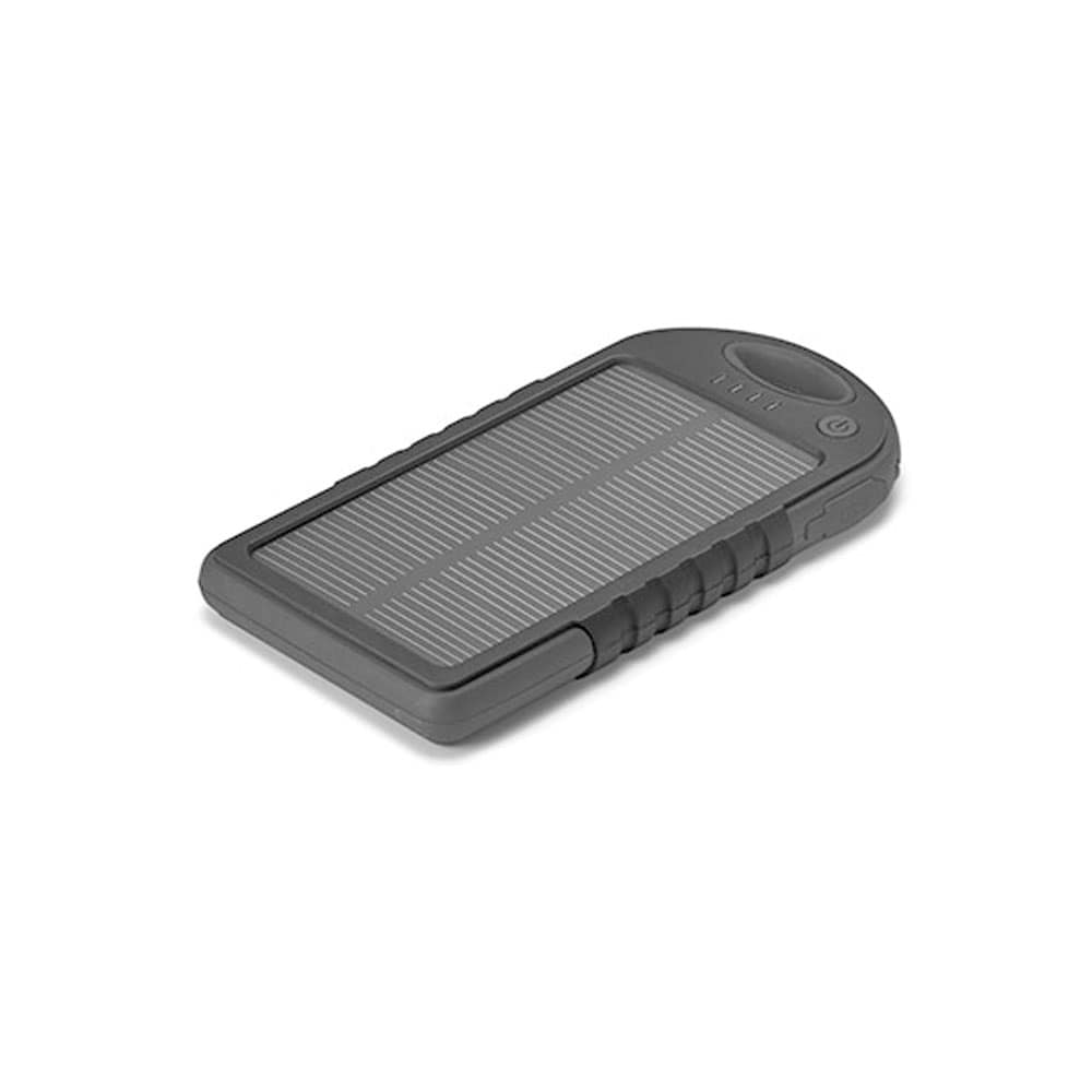 Bateria portátil solar personalizada com painel solar e LED, é um ótimo aparelho que utiliza de uma energia renovável limpa. /saíBateria de lítio. Capacidade: 2000 mAh. Com entradada 5V/1A. Incluso cabo USB/micro-USB para carregar a bateria.