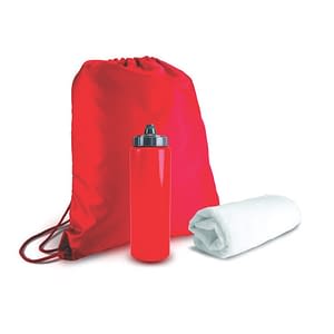 Kit fitness. Incluso elástico e corda de pular. Fornecido com bolsa em 190T. Bolsa: 210 x 270 mm.